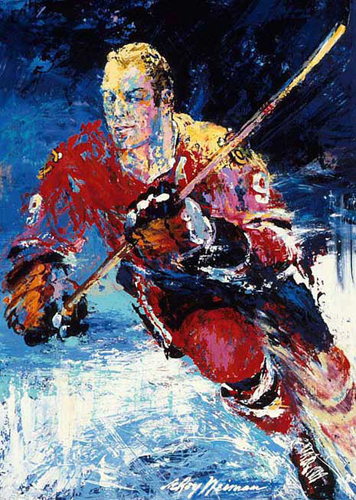 LeRoy was an artist whose paintings are immediately recognisable for their dynamic subjects and brash primary colours, often executed in household enamel paint. He blended a Pop Art sensibility with impressionistic brushwork and vibrant color. His pictures captured the essence and movement of sports personalities, film stars and jazz musicians. From the 1960s onwards the majority of Neiman's paintings focused on sport. This became formalised in 1972 when he became official painter for the Munich Olympiad, a position he would continue to hold up to the Los Angeles games in 1984. Muhammad Ali commented, "It was not unusual for me to look up from a work-out or a sparring session to see Leroy perched on a chair, off to the side, studying my movements while sketching in quick strokes."