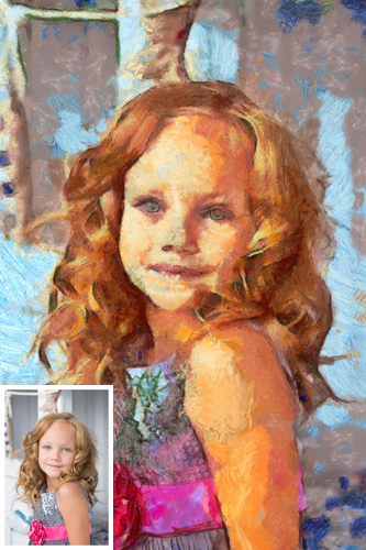 Vincent Van Gogh's post-impressionist portraits are some of the world's most recognized paintings. He is well known for his brushstrokes of thickly laid on oil paint which uses a technique called impasto. The thick, clearly visible brushwork gives added texture to the painting so it isn't a flat surface. Let our artists create a unique portrait using thick, impasto paint.